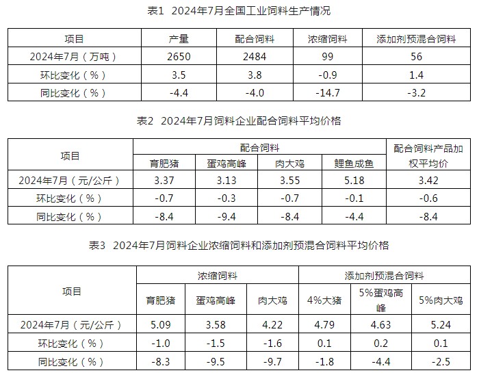 2024年7月份全国饲料生产形势-999棋牌老版本