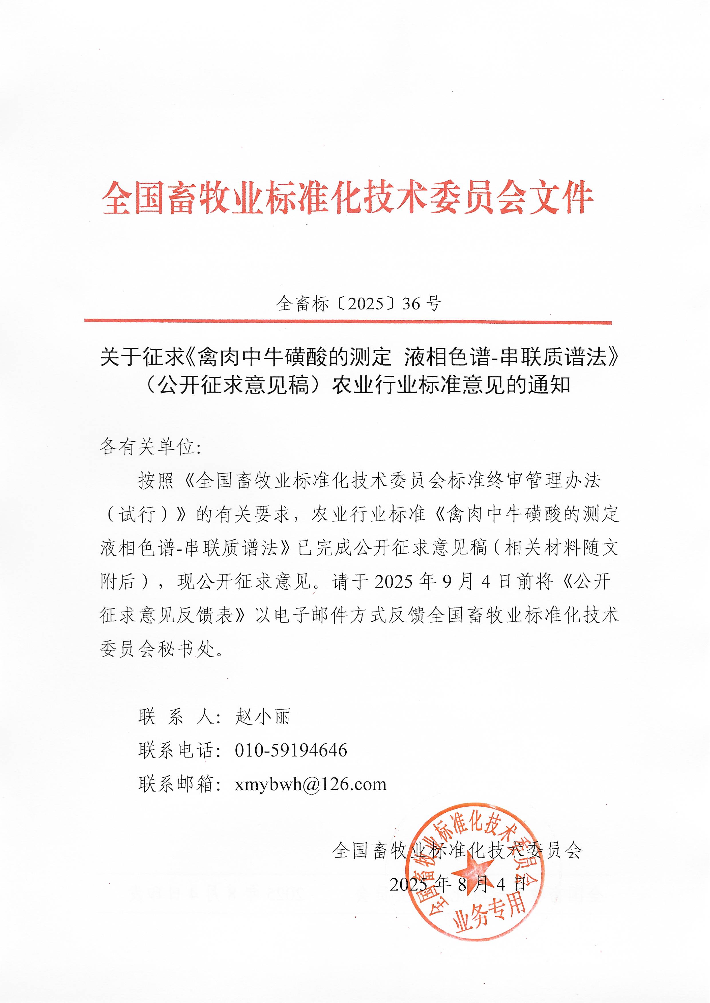 关于征求《禽肉中牛磺酸的测定 液相色谱-999棋牌老版本