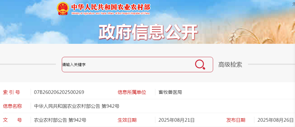 根据《进口饲料和饲料添加剂登记管理办法》有关规定,批准拉曼集团波兰有限公司等103家公司生产的259种饲料和饲料添加剂产品在我国登记或续展登记,并颁发进口登记证(见附件1)。其中,批准意大利建明卡夫里亚戈有限公司的“科金瑞tm”、丹麦罗德农业股份有限公司的“优个乳”产品配方改变,重新颁发进口登记证,原登记证“(2023)外饲准字568号”、“(2024)外饲准字995号”作废。批准韩国第一化学株式会社等9家公司生产的13个产品的中文商品名称、英文商品名称、申请企业名称、生产厂家名称变更(见附件2)。上述产品的监督检验,按中华人民共和国国家标准和农业农村部发布的质量标准执行。