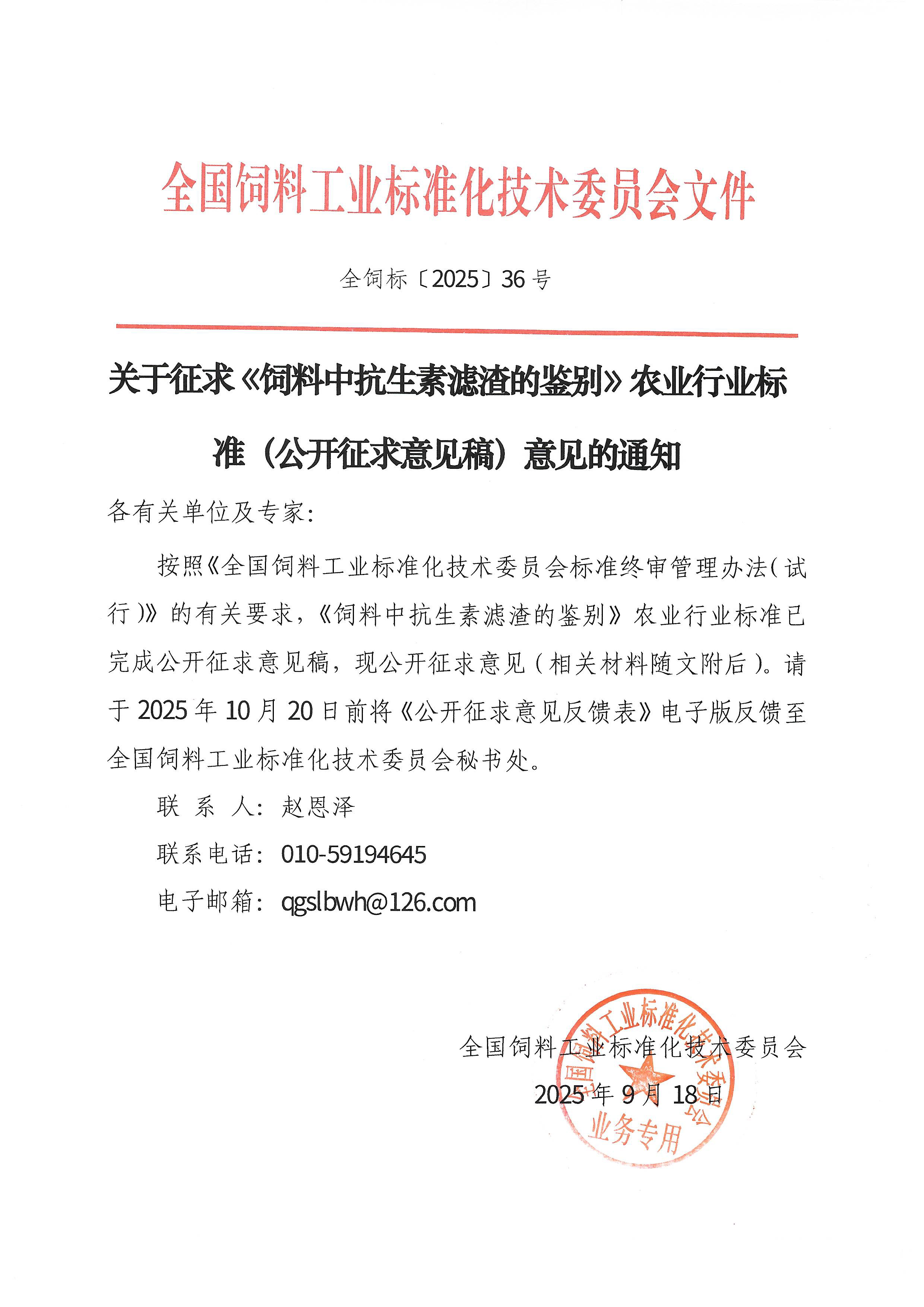 关于征求《饲料中抗生素滤渣的鉴别》农业行业标准(公开征求意见稿)意见的通知-999棋牌老版本