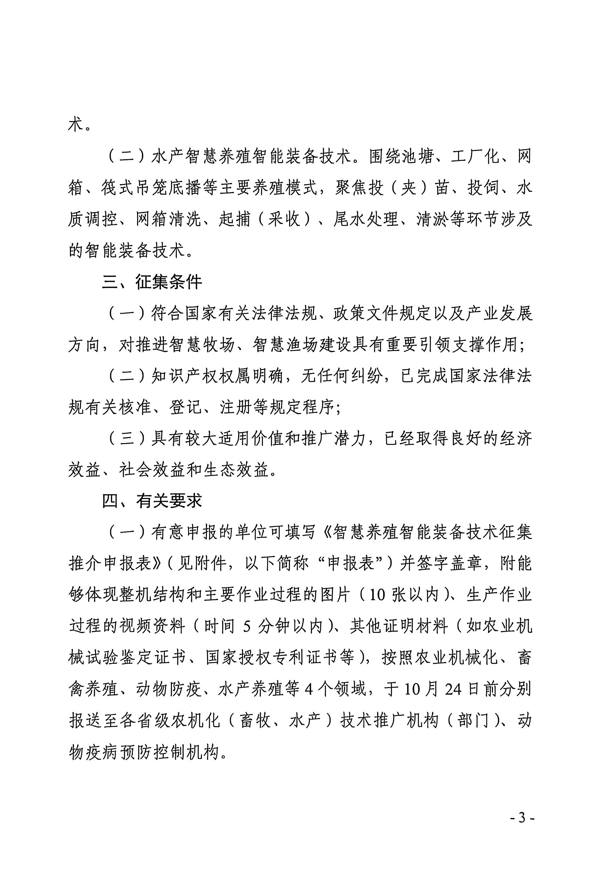 关于开展智慧养殖智能装备技术征集推介工作的通知-999棋牌老版本