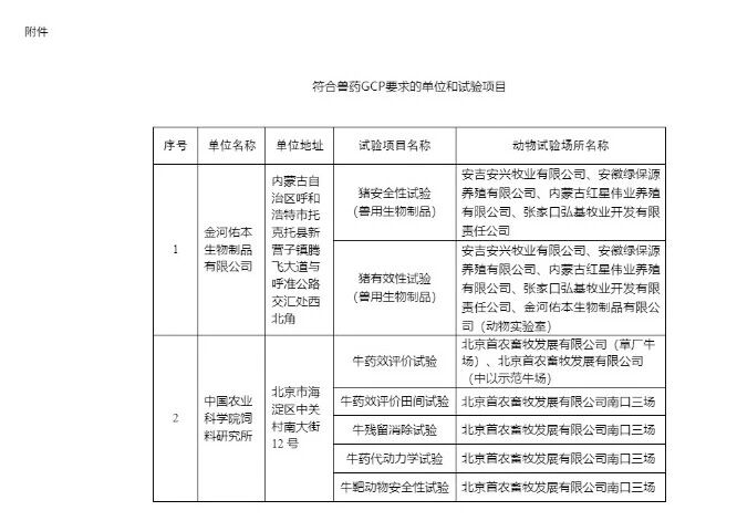 华南农业大学等12家单位申请增加兽药gcp动物试验场所、武汉科前生物股份有限公司申请减少兽药gcp动物试验场所、江苏省农业科学院申请变更兽药gcp动物试验场所名称、国药集团动物保健股份有限公司等2家单位申请变更兽药gcp项目负责人、兆丰华生物科技(南京)有限公司等3家单位申请变更兽药gcp机构负责人、河南农畜水产品检验技术研究院(河南省农药兽药饲料检验技术研究院)申请变更兽药非临床研究机构负责人,经我局组织资格确认,上述申请符合相关要求,予以变更。详细信息见中国兽药信息网“兽药glp/gcp监督检查”专栏。