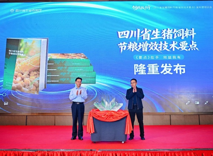 10月24日,由四川省农业农村厅主办、四川省饲料工业协会协办的全省饲料监管培训暨《四川省生猪饲料节粮增效技术要点》(以下简称《技术要点》)发布会,以“现场观摩 专题培训”的形式在内江举行。省农业农村厅党组成员、副厅长向贵瑜参与现场观摩,内江市政府党组成员蒋伟陪同。四川农业大学教授、四川省饲料工业协会会长陈代文,四川省农业农村厅饲料兽药处处长黄洪春全程参与,并为《技术要点》揭幕。
