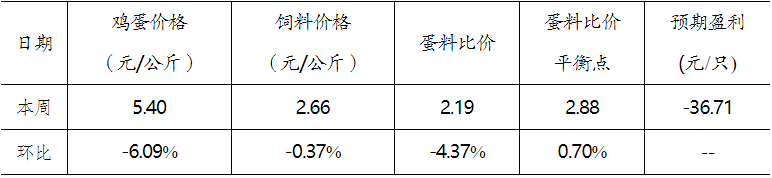 蛋鸡方面,鸡蛋价格处于较低水平,贸易商或逢低补货,食品厂采购低价货源积极性也有所提升。未来蛋鸡养殖亏损36.71元/只。